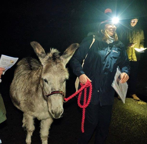 And on a blustery winter night we joined in a ‘walking nativity’. As we re-imagined Mary and Joseph’s journey from Nazareth to Bethlehem we made our way round the village accompanied by donkeys, a star and, even for part of the journey, a baby. All ending up with a final carol, mince pies and mulled wine in church.